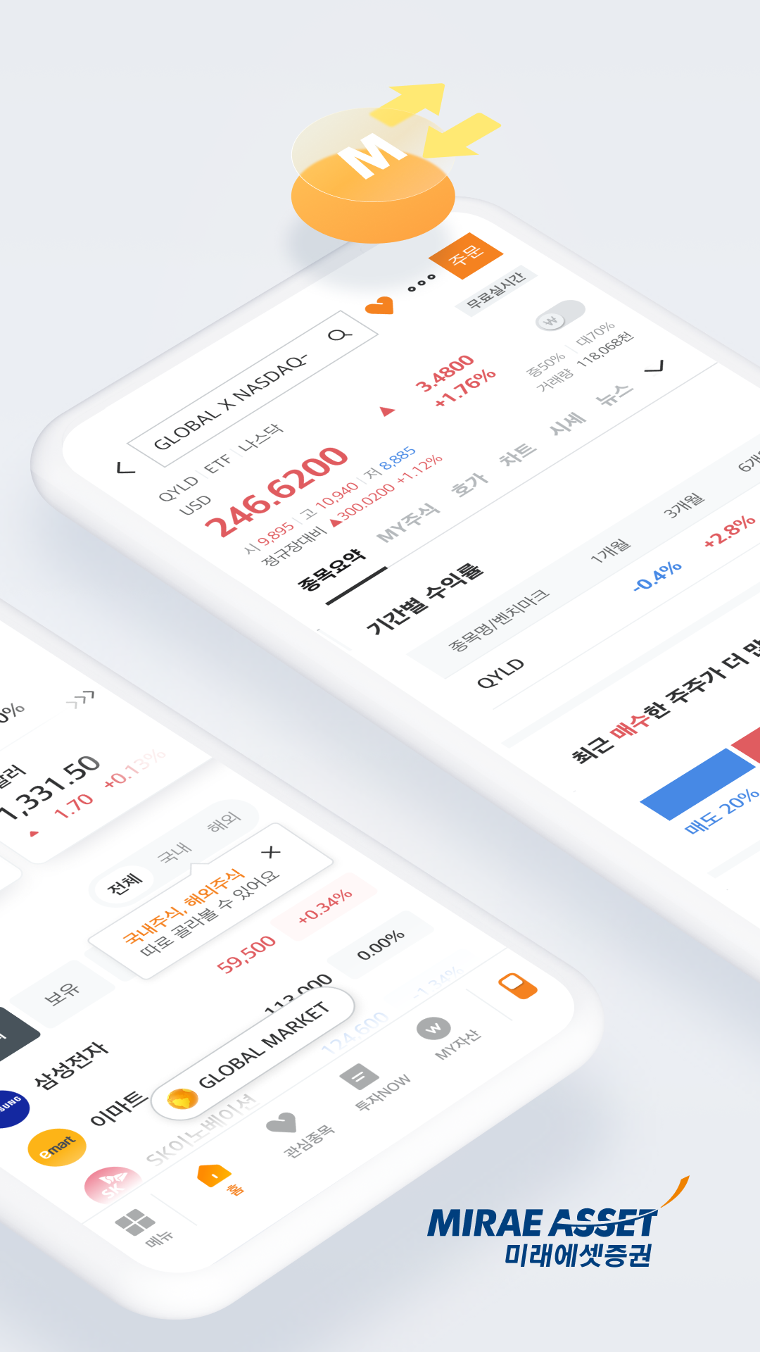 구글 플레이스토어와 애플 앱스토어에서 ‘미래에셋증권’ 또는 ‘M-STOCK’을 검색해 무료로 설치할 수 있습니다.